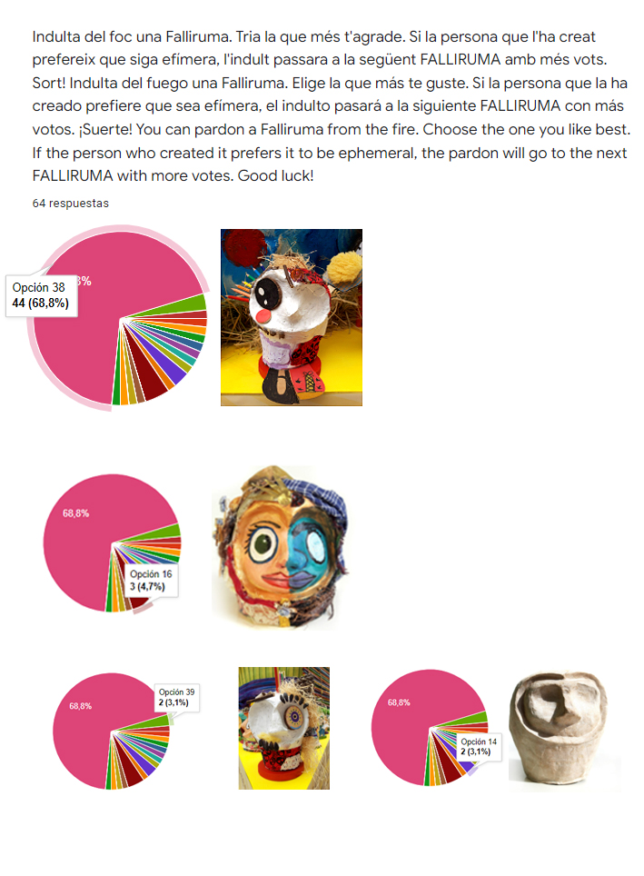 Indulta del foc una FALLIRUMA . Tria la que més t’agrade. Si la persona que l’ha creat prefereix que siga efímera, l’indult passara a la següent FALLIRUMA amb més vots. Sort!